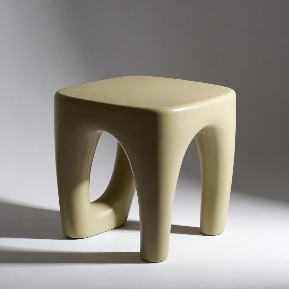 A solid yet lightweight concrete stool with clean curves and a timeless modern form.